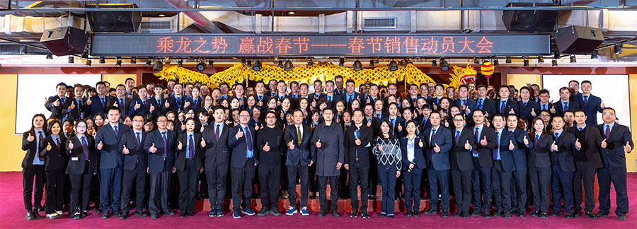 龍年寓意祥瑞與吉兆 ,在十二生肖中,龍被賦予了祥瑞與力量的象征。金龍獻(xiàn)瑞,齊樂龍龍。大會(huì)現(xiàn)場龍騰飛舞,戰(zhàn)鼓聲齊鳴,在雷鳴般的掌聲中全體將士心情澎湃、豪情滿懷,跟隨金龍環(huán)繞會(huì)場,將滿滿的激情融入到春節(jié)誓師總動(dòng)員中,預(yù)示著壹加壹在春節(jié)銷售中紅紅火火。